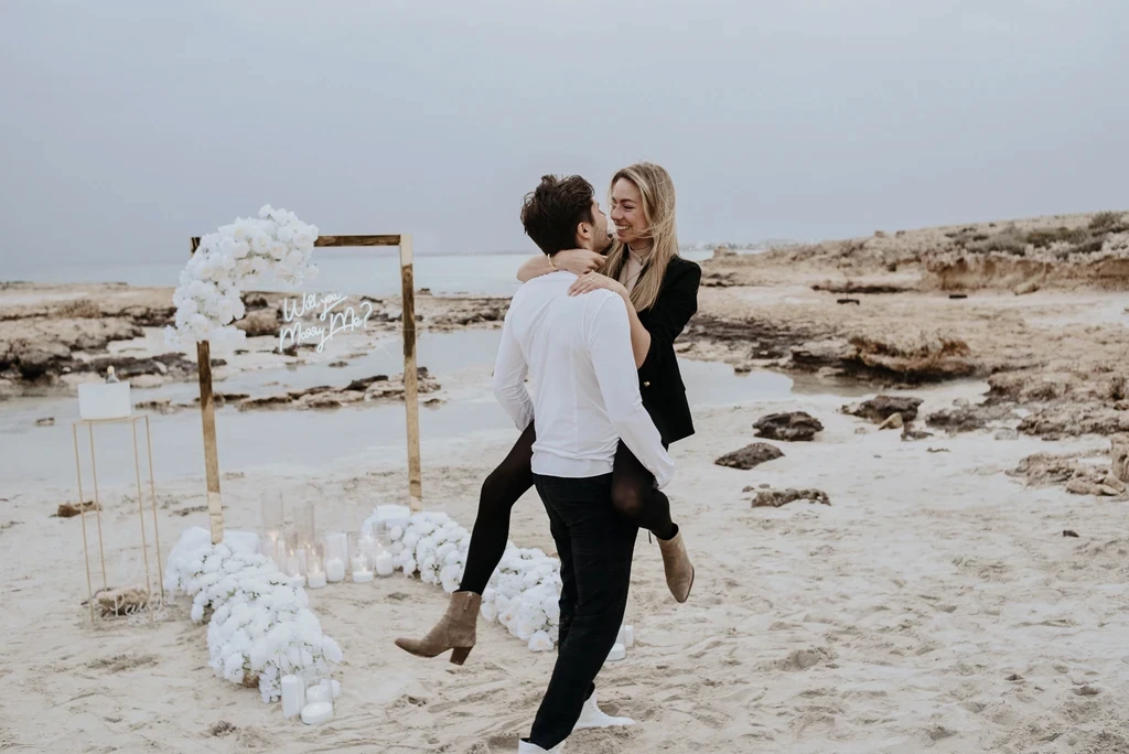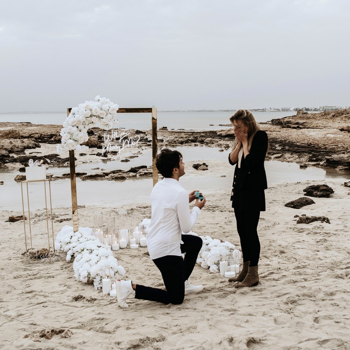 Mit zitternden Händen, klopfendem Herzen (und Sand im Schuh) ging Alex auf die Knie – und fragte die Frage aller Fragen. Pauline war völlig überrascht, schnappte nach Luft, zitterte am ganzen Körper – und sagte am 09. April 2023 dann das schönste „Ja!“ ihres Lebens.